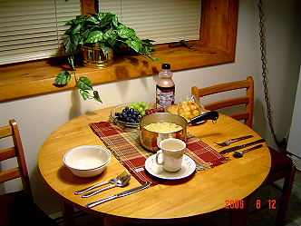 笑話一則: 起初我們找不到鍋子放在那兒,所以跑去請求老闆: 可不可以給個鍋子,方便我們煮泡麵。結果老闆,親自到我們房間,指出放鍋子的位置所在。在美國住這麼久,我真的不知道大烤箱下面還有一個抽屜,可供置放雜務。事後我們還向老闆諂媚 "喔!您的旅館很貼心唷!" 也視情況看可不可以撈一點好處...。哈!