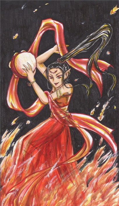 火焰中跳舞,難怪有點熱熱的,真是厲害,畫得出這感覺!