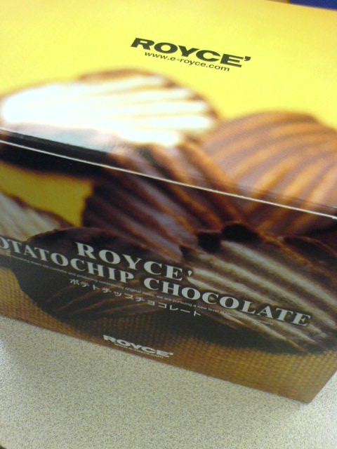後來,日本牌子Royce在香港開店,他們的朱古力不錯,同時,發現他們有售朱古力薯片。