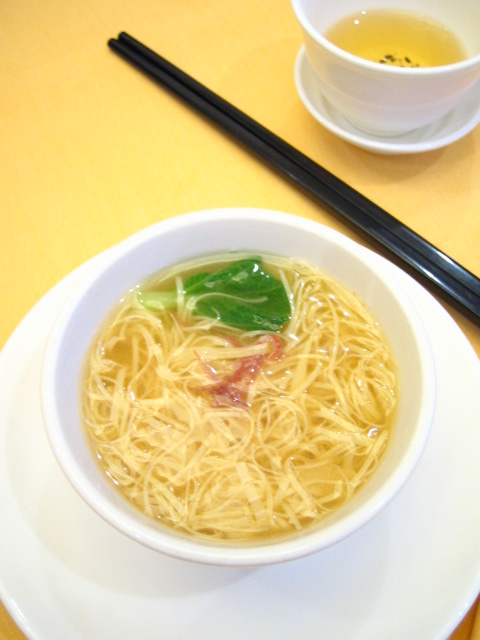 巧合地,吃到大廚為我特別製作的金絲麵,湯底以金華火腿和雞熬成,再加入他親自製作,幼得像髮絲的麵條,以細小的白瓷碗奉上,認真滋味!