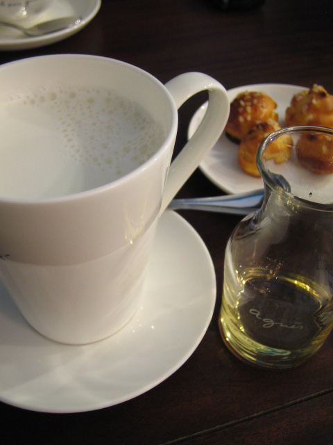 熱鮮奶,就是那種可以自由加入不同口味糖漿的熱奶,很法式的飲用方法。這天,我選飲了焦糖味糖漿加熱鮮奶,好味!