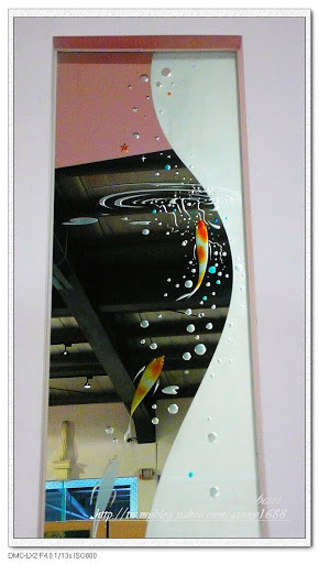 由七彩色澤組合而成的玻璃牆面,和天花板上的彷製的銀河景象~~真的有種走入時光隧道的感覺~ 一條很美、夢幻的銀河隧道
