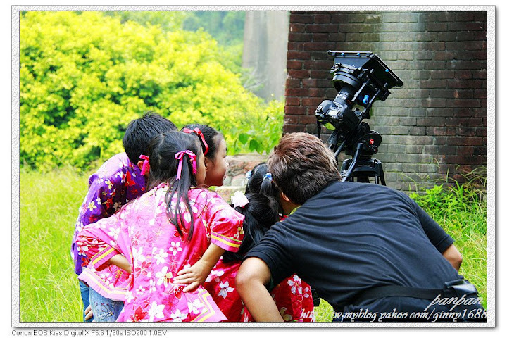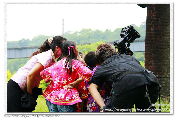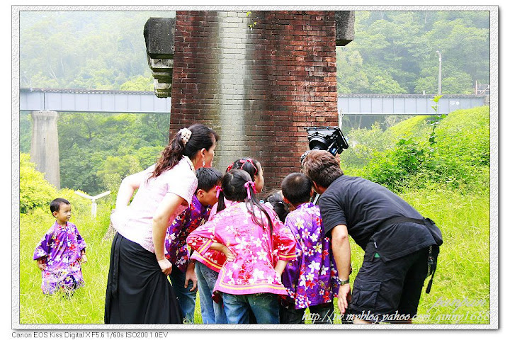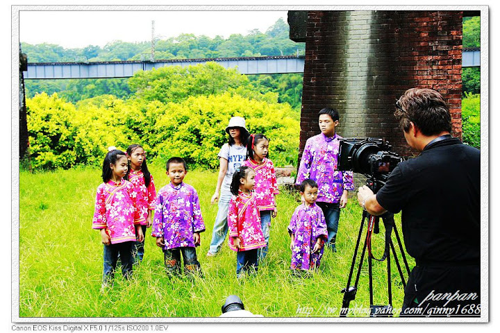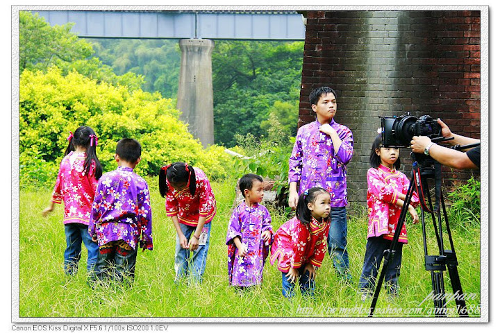 遇到一群 天真無邪 活潑可愛的小朋友在拍外景~~他們身上服裝圖騰是油桐花 象徵苗粟客家之特色~~