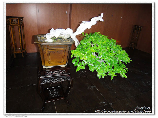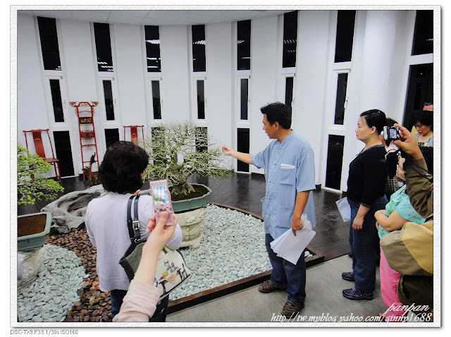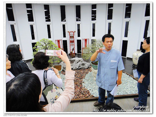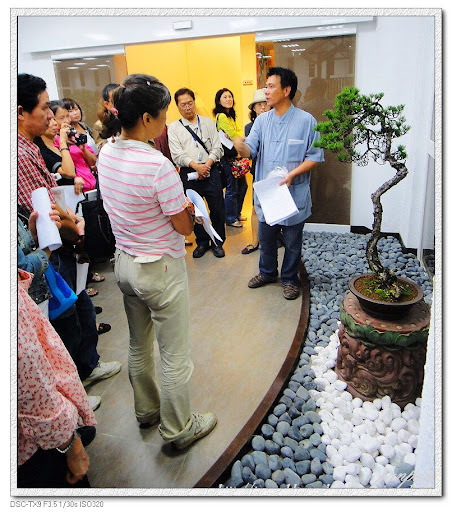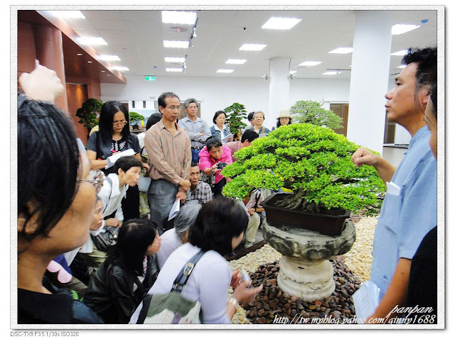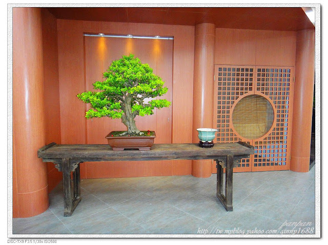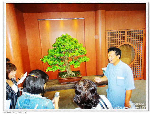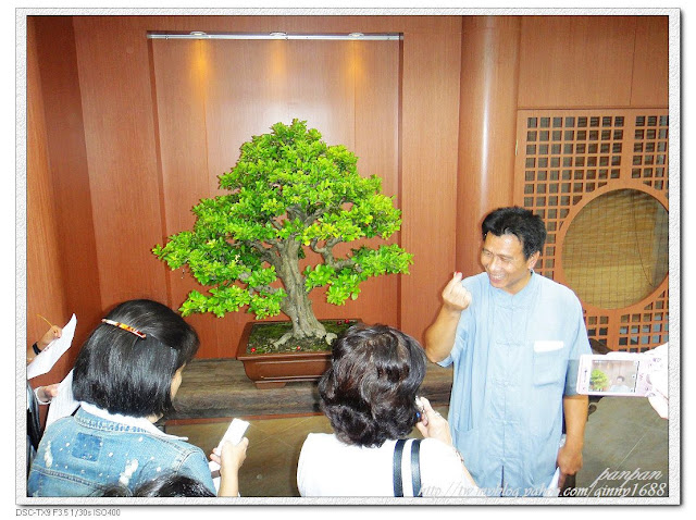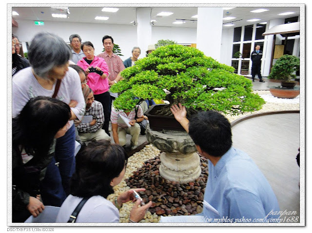 入口服務台 花博「養生氧生/百齡花瑞」百年盆景作品搶鮮曝光 以下作品圖片Panpan於2010/10/6晚上用( Sony TX9 相機拍攝) 林慶祥老師指導花博導覽員如何去幫參觀賞花的嘉賓解說引導並讓會館動線可流暢~ 林慶祥老師指導花博導覽員如何去幫參觀賞花的嘉賓解說引導並讓會館動線可流暢~ ▲ 養生館沿用位於新生公園區的小白宮,以盆景展示做為主題。 展示百年樹瑞 推廣臺灣盆景 「養生館」以「盆景展示」主題,展館中將展示百年樹齡或特殊風格之盆景,以展現臺灣盆景產業的文化涵養與特殊造型技術,表現臺灣盆景藝術的精湛,呈現盆景的意境美及生命跳躍動力,並推廣盆景藝術鑑賞與造型設計至國際人士與社會大眾。 盆景展示主題與展場規劃以文人雅士的休閒藝術為發想,融合詩詞掛畫,使盆景藝術與人文藝術結合。展示各時節、不同類型的盆景特色。各展期之盆景數量約100盆,全展期總計至少350盆盆景。現場另有相關活動,例如盆景創作教學、介紹藥用植物、香草植物甜點應用等。 雅致飄逸 古意盎然 盆景展示展覽將結合中華盆景藝術全國總會,以及全臺21個地方盆景協會,共同合作完成此一盛會,同時與相關學者專家聯繫請益,力求確實能將養生館之展示精神核心-盆景,以呈現最好的作品,展現百齡盆景的樹齡、創作姿態美、造型優美性、獨特性、稀有性、雅致飄逸感、奇特之古意盎然等,提供欣賞者有如沐大自然的視覺享受。 百齡花瑞盆景為精緻、需專注照護、具生命力的展品,並且諸多展品價值不菲,展覽中將展示百齡盆景的收藏精品,並舉辦全國盆景大賽,以展現臺灣盆景界的精湛與技術,讓國人都能有一飽眼福的機會。盆景每週更替一次,觀眾隨時可欣賞不同盆景的展示。 林慶祥(老師)0936-456-168 信箱:hhyy510311@yahoo.com.tw 文字轉載出處: http://beta.2010taipeiexpo.tw/ct.asp?xItem=11289&ctNode=5773&mp=3 2010臺北國際花卉博覽會官方網站 Beta 3.0 ─ 養生館 http://www.2010taipeiexpo.tw/ct.asp?xItem=17963&ctNode=1792&mp=3 2010 臺北國際花卉博覽會 ─ 越老越珍貴 花博養生館百年盆景超吸睛 http://news.cnyes.com/special/2010FLORAEXPO/index.shtml 2010台北花博展──打造亞洲國際花舞城市_新聞中心_鉅亨網_投資全球 讓你鉅亨 http://news.cnyes.com/Content/20100917/kcbo5jr0py4lg.shtml 花博養生館400件盆景作品 百年盆景搶鮮曝光_新聞_鉅亨網_投資全球 讓你鉅亨