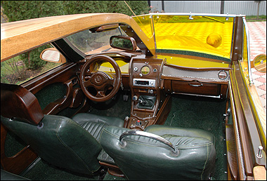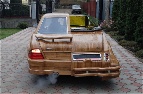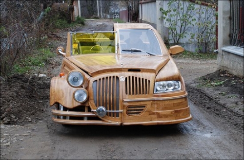 這輛車的左邊是現代轎車的造型,而右邊則是上世紀30年代的敞篷車造型。整輛車的外形完全是靠手工將橡木拼接而成。 Vasyl則花了一年多的時間才將這些木頭雕刻好並拼接在一起。