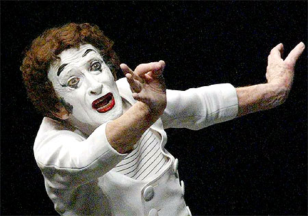 默劇大師馬歇馬叟二十二日病逝巴黎,享年八十四歲,圖為馬歇馬叟二○○三年十二月二十七日在葡萄牙首都里斯本表演「靜默的藝術」。(歐新社)