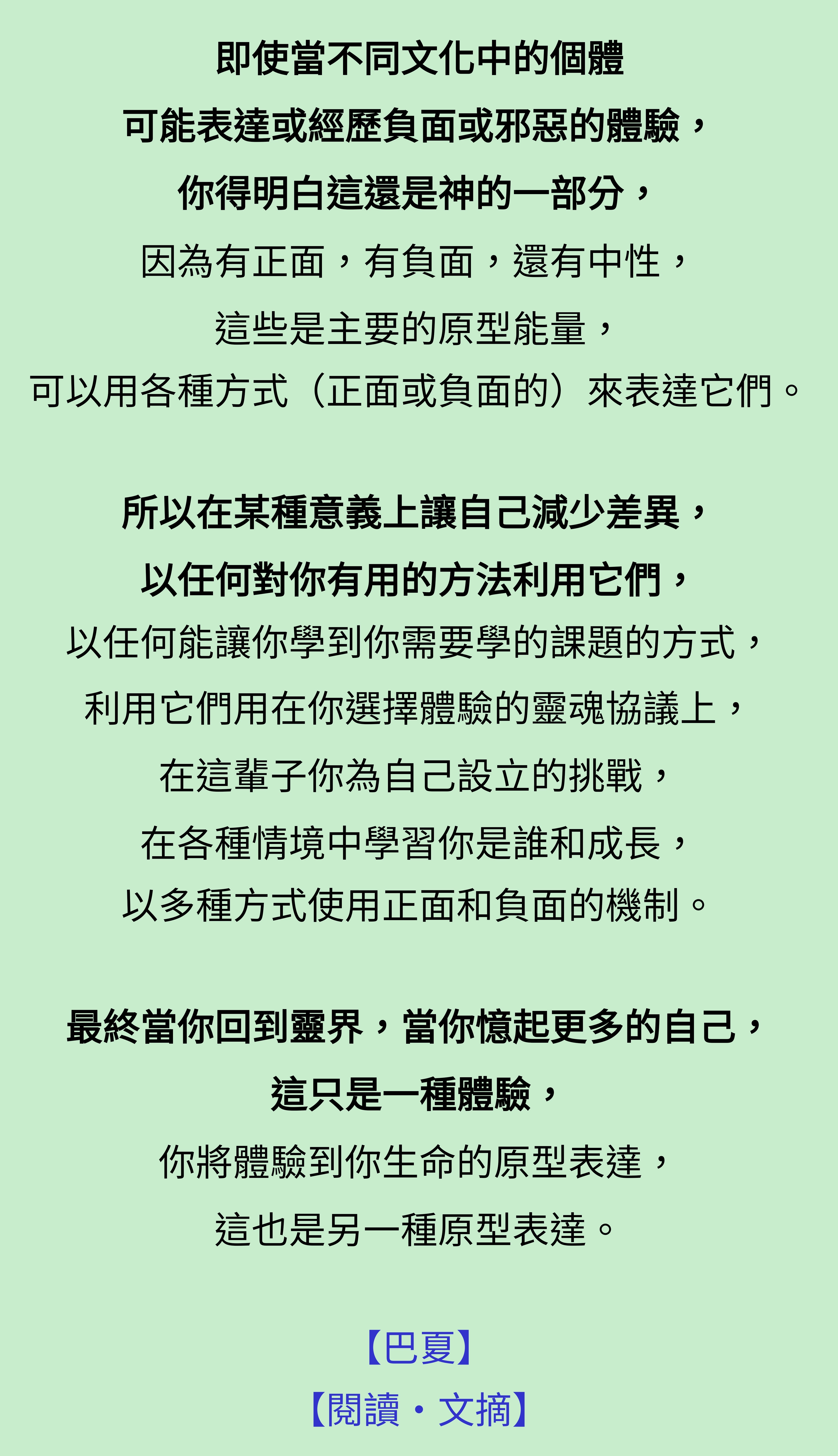 【巴夏】即使當不同文化中的個體 可能表達或經歷負面或邪惡的體驗, 你得明白這還是神的一部分。