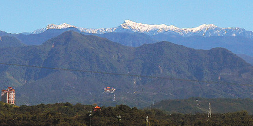 平地清晰可見玉山白雪皚皚的景象
