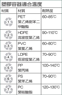 A:雙酚A是PC材質的原料,常用來製作嬰兒奶瓶、運動水瓶和保溫水杯,應避免裝高溫食物,清洗時注意勿刮傷容器。