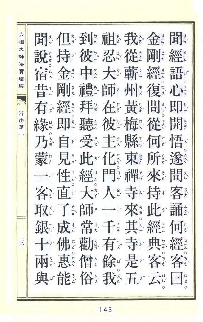 客云:『我從嶄州黃梅縣東禪寺來。其寺是五祖忍大師在彼主化,門人一千有餘;我到彼中禮拜,聽受此經。大師常勸僧俗,但持金剛經,即自見性,直了成佛。』
