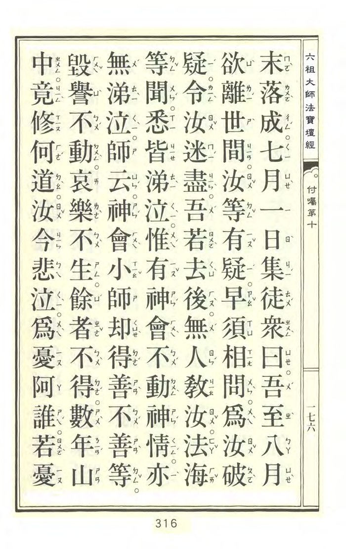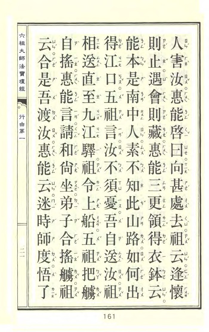 八月餘日,祖一日忽見惠能曰:『吾思汝之見可用,恐有惡人害汝,遂不與汝言,汝知之否?』