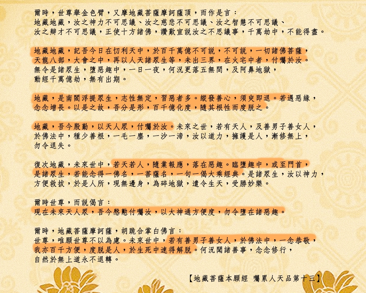 【地藏菩薩本願經 囑累人天品第十三】
