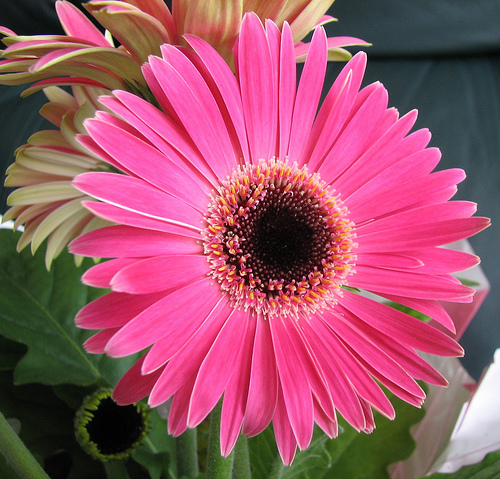 非洲菊(Gerbera)是一種一年生花卉。市場上栽培的品種多為雜交種。非洲菊其葉片肥大呈黑綠色,酷似白蘿蔔的葉片,花梗從植株中間的葉腋處抽出。花朵呈圓盤狀,每朵花都由許多單瓣組成,所以整個花朵通常為重瓣或半重瓣,有些品種的花朵有明顯的中心洞眼。非洲菊花朵亮麗,花色鮮艷豐富,開花期長,當老花敗花後,新的花梗會不斷地從植株中間抽出,對環境的適應性好,所以在北美是人人喜愛的重要盆花和插花花卉之一。市場流行的品種根據其花朵的大小和植株長相可分為三個類型,第一類是大花型,花朵一般在3到4寸左右。花莖較長,植株生長勢強,株型較為鬆散, 這一類品種主要用作為切花和其他花卉搭配一起作為插花之用。第二類是中花型的品種,花徑一般在2到3寸之間,這一類品種主要作為盆栽花卉種植,而且一般用於較大的器缽栽培例如6到12寸的器缽,花莖中等高度,株型較為緊湊。第三類是小花型 品種,又被稱為mini型,花徑一般在1到2寸之間,株型緊湊,株高較矮,主要作為較小的器缽栽培例如3到5寸盆缽。非洲菊的花色,主要有紅,水紅,深紅,金黃,黃,玫瑰,杏黃,白,乳白及兩色等等。