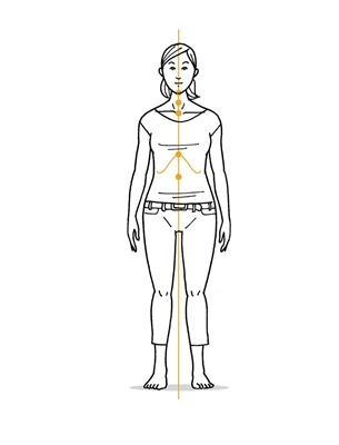 下顎、頸部中心軸和鎖骨中心點的凹陷處要在一直線上,身體才能保持正確位置,均衡支撐頭部重量。身體長期處於歪斜狀態,不只會導致頸部到肩膀周邊的肌肉僵硬,還會加速頸椎椎間盤和關節變形等問題,嚴重危害身體健康。