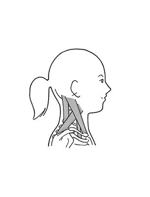 下顎、頸部、鎖骨中心,3點1線身體就不歪