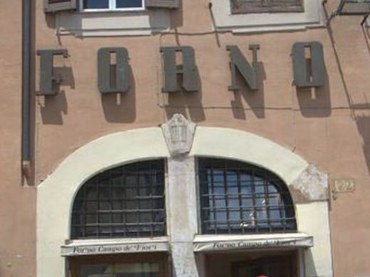 在羅馬 Campo de Fiori 的一角,有一家麵包店 FORNO (Bakery) 。隔著玻璃窗,可以看到師傅正邁力的捏揉麵糰,桿出長長的麵包,在上面撒上塩和 extra virgin 橄欖油,送入烤箱,就成了 這家麵包店最有名的 pizza bianca 。