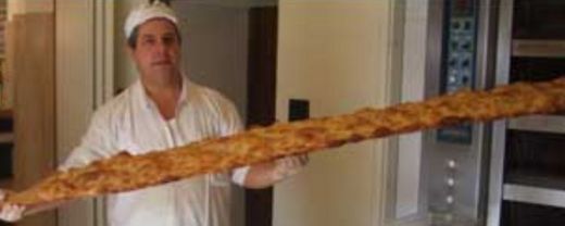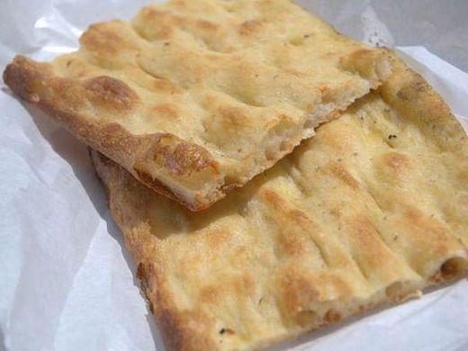 店內,櫃台前擠滿了人,告訴店員你要買多長,他們切好後,稱重計價。 趁熱趕快享用,吃了就知道,這是會 讓你永生難忘的滋味。為什麼這麼簡單的材料,麵粉、水、酵母、 塩、 橄欖油,就可以變成 人間美味呢 ? 據老闆說,密訣是麵糰要發酵八小時。