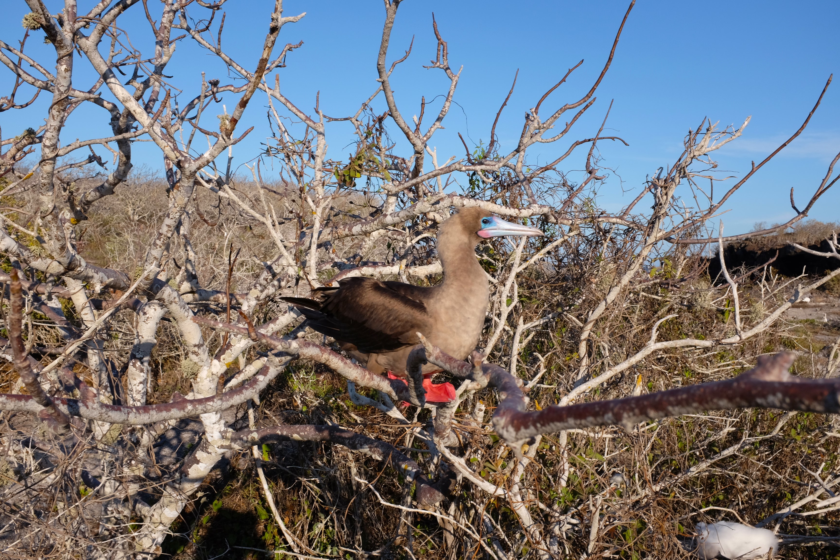 《紅腳鰹鳥》的分佈比較没有《藍腳鰹鳥》那麼廣,這座《赫諾韋薩島》是我這趟來《加拉巴哥群島》唯一看到《紅腳鰹鳥》的地方。這應該也是在《加拉巴哥群島》裡《藍腳鰹鳥》比《紅腳鰹鳥》出名的原因吧!。