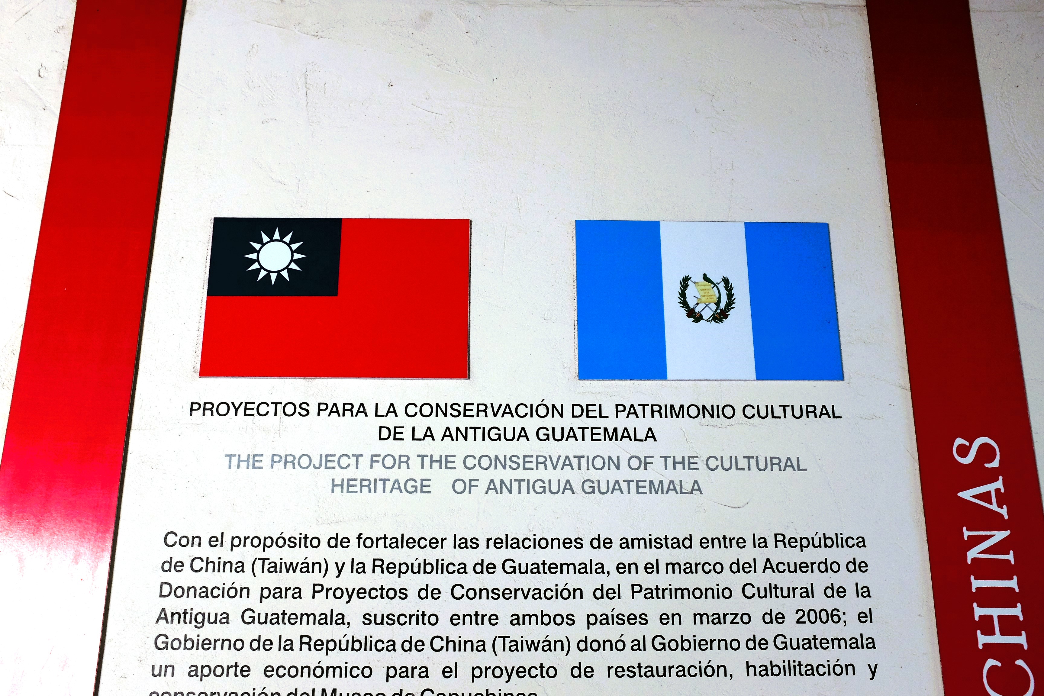 值得一提的是因為台灣和瓜地馬拉有正式的邦交,所以在《安地瓜》有很多古蹟都是由台灣協助修復的,這座《嘉布遣教堂及修道院》就是其中一座。在修道院的二樓還設有一座有台灣國旗的專屬博物館以紀念台灣的協助。在世界各地旅行很難得可以看得到台灣國旗,看到了還是很感動的。
