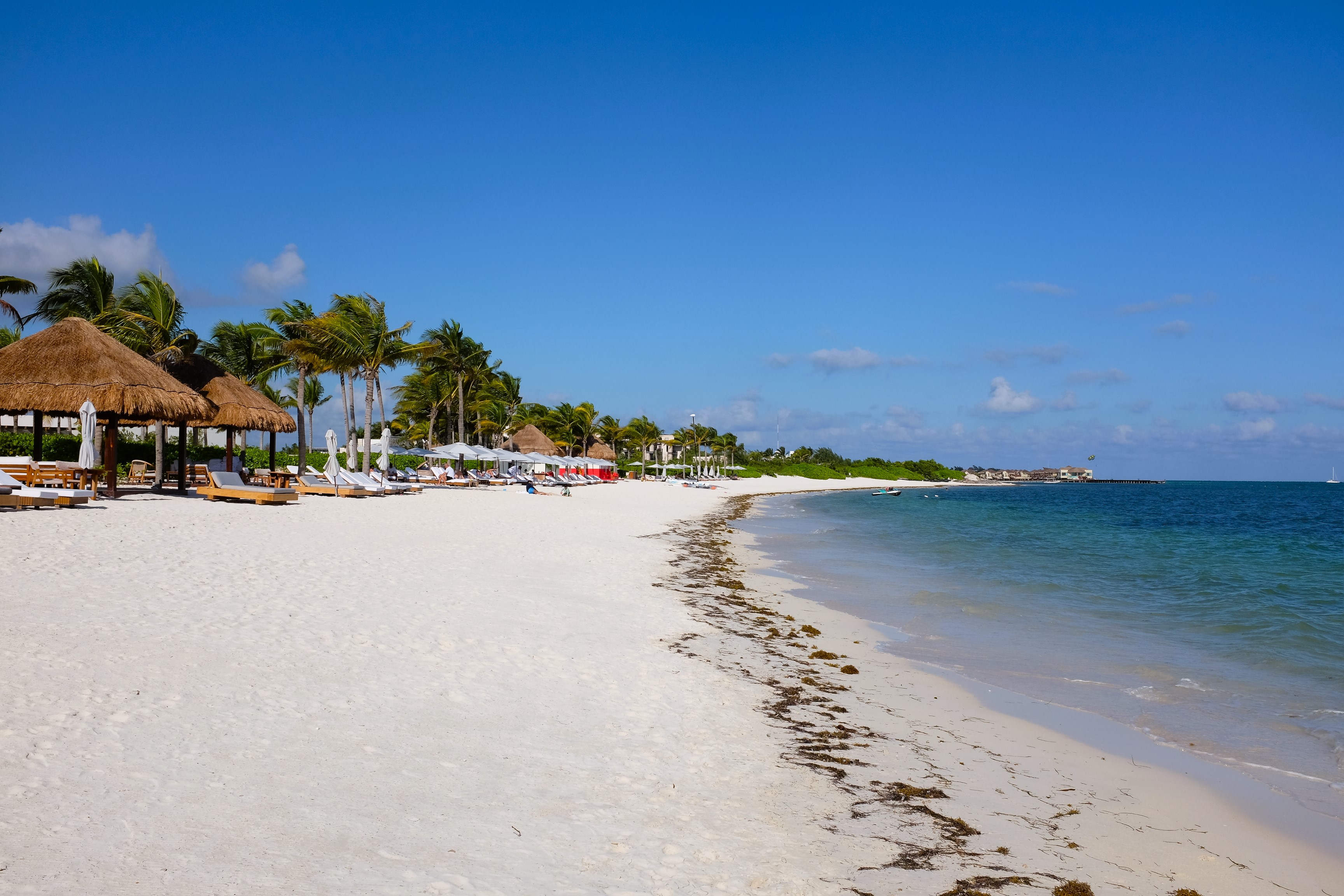 《馬雅海岸》的白沙灘。這一帶近年來海藻過於繁盛,沙灘上常常會看見隨著潮水堆積起來的海藻。
