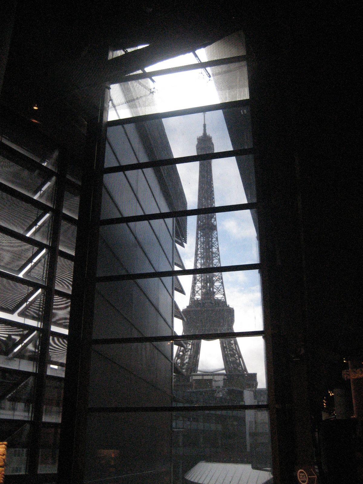 這個博物館離巴黎鐡塔真的很近。建築大師特地設計了這個長窗可以把整個巴黎鐡塔收進來。真的要給他拍拍手。