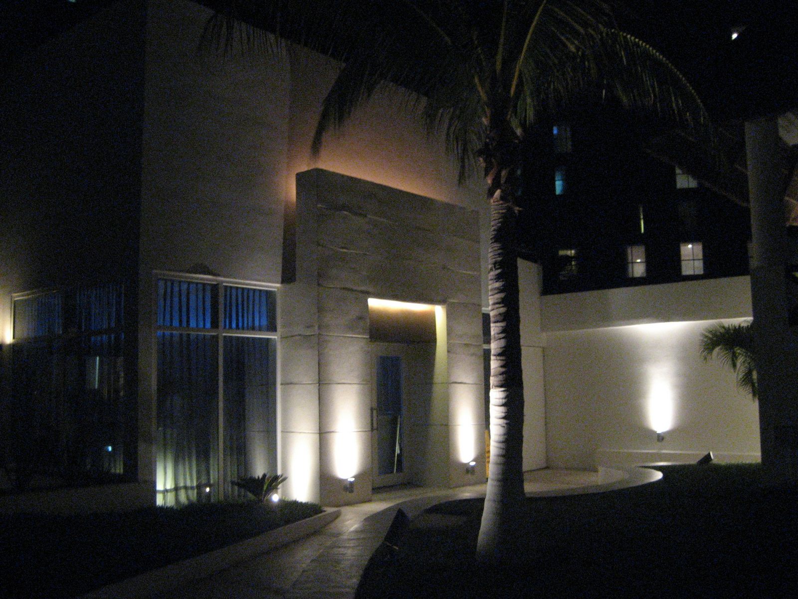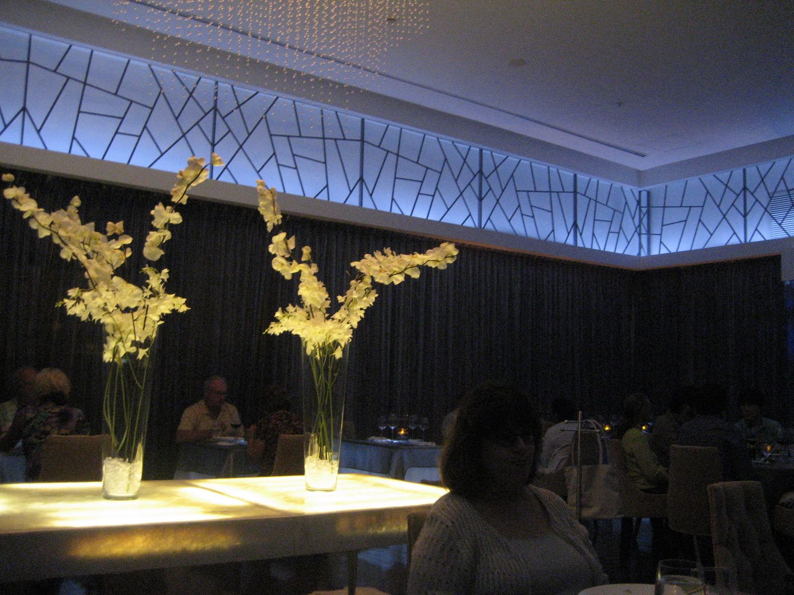 它入口的設計也有點奇怪。別的餐廳都是直接從渡假村的內部就可以進去。可是這間要繞一圈到室外,大門面對渡假村其中的一個游泳池。可能是要突顯法國餐廳的特別吧。可是我比較務實,想的是如果下雨的話,女士們打扮的漂漂亮亮的,還要從雨中繞過來,不是很麻煩?不過Cancún下雨的機會可能不太大吧,所以大概又是我自己在幫人家杞人憂天。