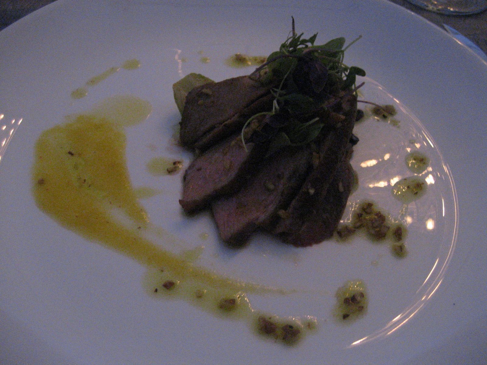 主菜之一的橙汁鴨胸。這個鴨胸煎得很好吃。外焦內嫩。