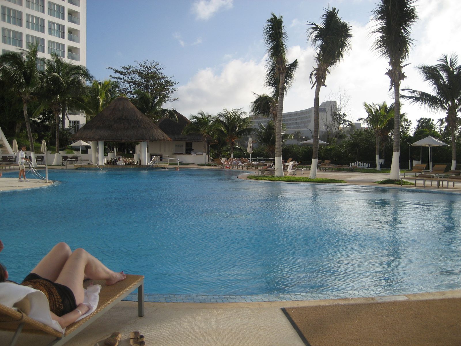 其實更重要的是每個游泳池畔都有一個酒吧。既然是包山包海的渡假村,在酒吧愛點什麼就點什麼,都是免費的。這對我們這種酒鬼來說當然是天堂啦!這個渡假村在Cancún的諸多渡假村中向來以服務和水準以上的美食聞名。你還没有坐定,服務員就會小跑步來問你要什麼飲料,要不要點什麼食物。服務相當周到。人家都跑一趟了,不點些什麼來吃吃喝喝,豈不是讓人白跑一趟。你看我們幫人家設想多麼周到啊!