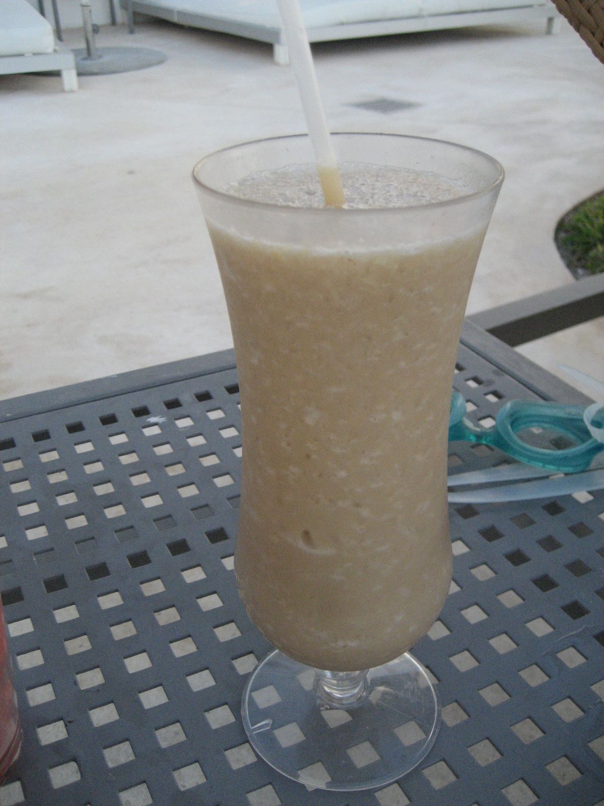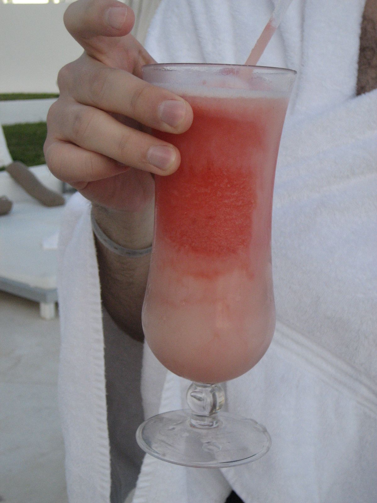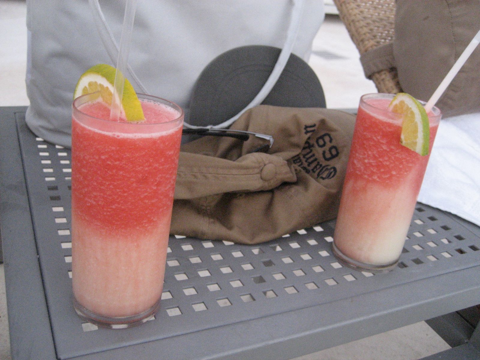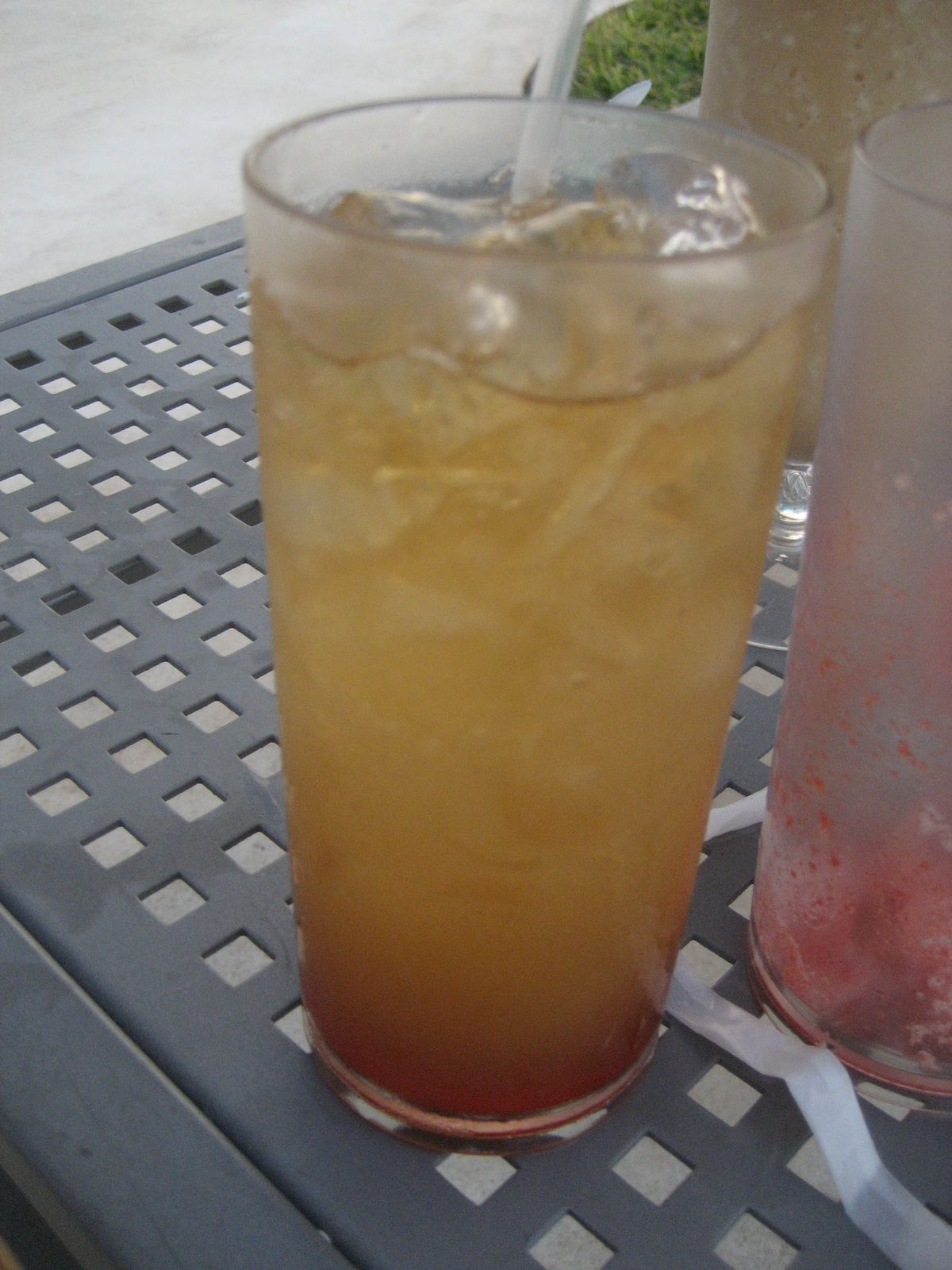 Piña Colada和白酒。這是第一次也是最後一次在游泳池畔點白酒。他們餐廳內酒的品質比較好。在外面還是喝調酒才是王道。