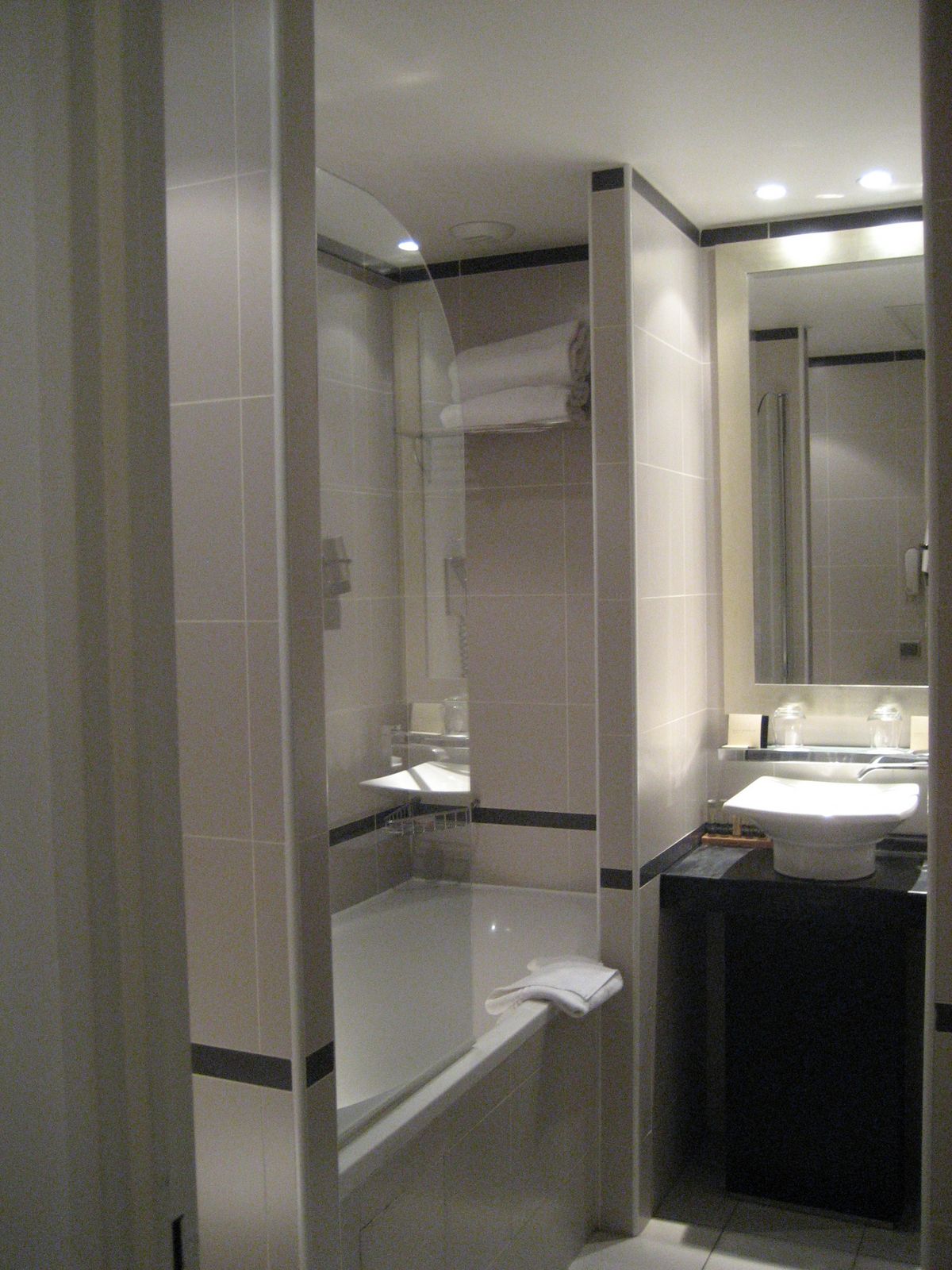 一樣是很詭異的浴缸。歐洲有很多的浴缸的浴門都像這樣只有作一半。早上一淋完浴之後外面就鬧水災。非常不人性的設計。還好不是自己家的浴室,否則一定天天捉狂。