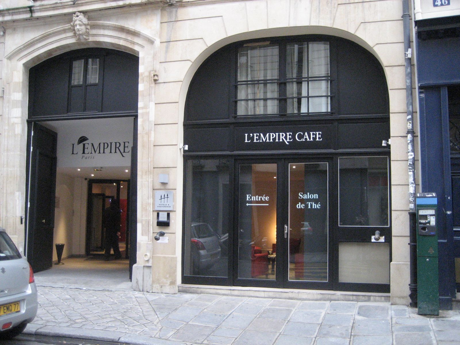 這旅館在巴黎市中心算很精緻了,如果沒付200Euro以上算撿到便宜。。。可能你去的季節是淡季,或拿到了last minutes promotion的價格。法文的名詞之前都得加冠詞Le或La,L'Empire碰到E是母音,所以用“ ' ”代替。而旅館玩文字趣味用帽子取代 ’ 。