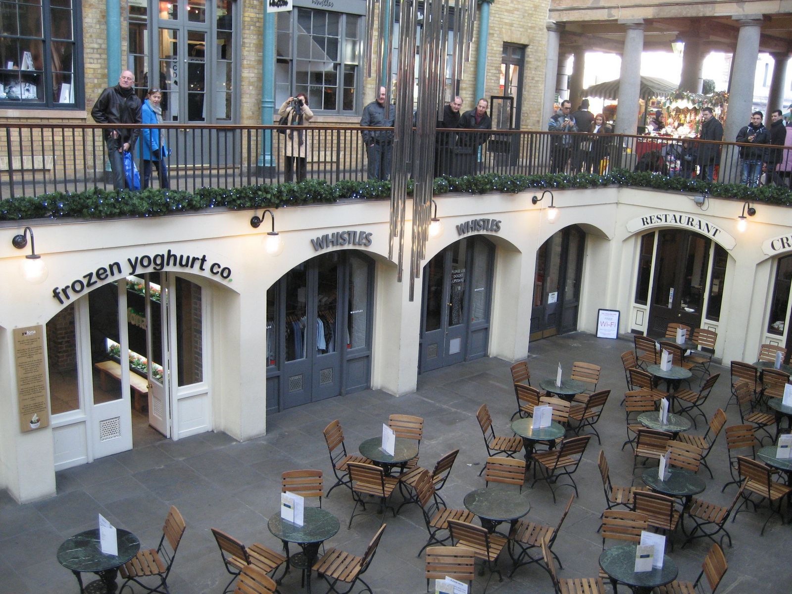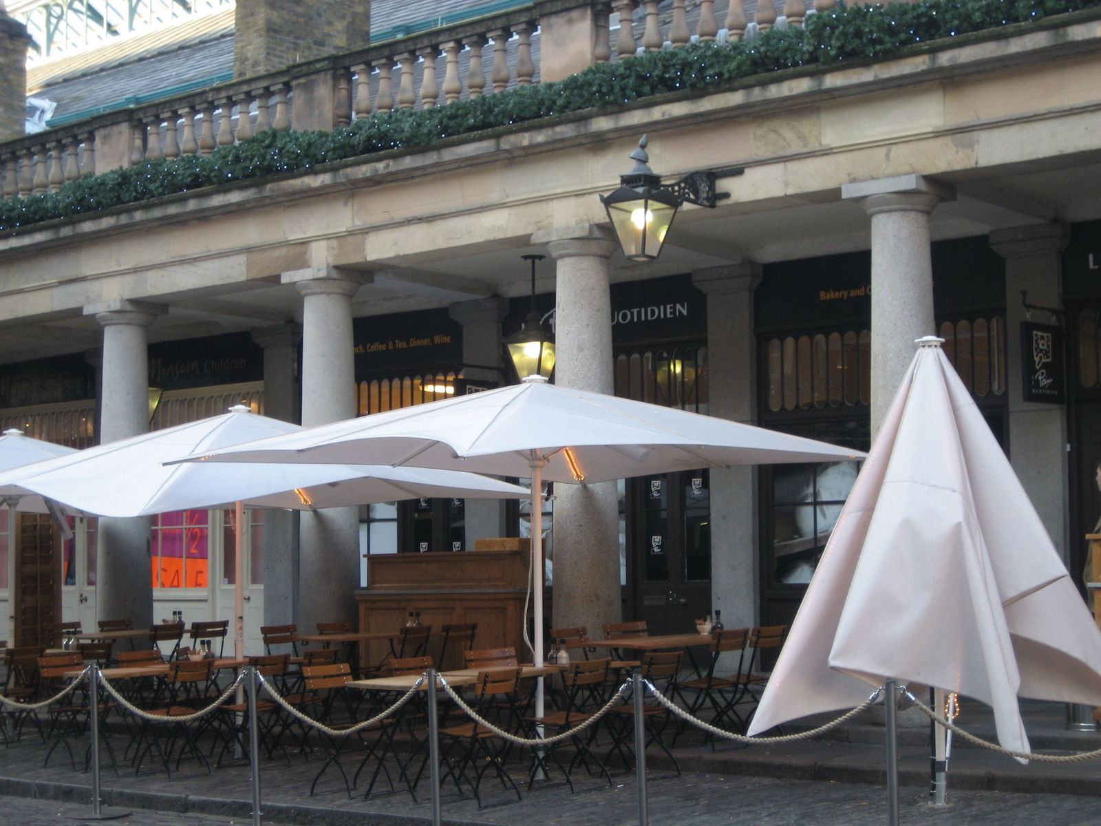 Covent Garden是倫敦市中心的一個區。一般的觀光客來這邊一般就是到Covent Garden Market來。這幾幢相連的建築物中有不少的小店商販。吃的用的都賣。也常常有很多的街頭藝人在這裡表演。不過以市集本身而論,算是很觀光化的一個市集。它所賣的生食熟食的東西不如泰晤士河南岸的Borough Market來得另人驚豔。其它的生活百貨有的没的也不如倫敦西區Notting Hill那一帶的市集來得多和廣。所以來這邊尋寶的樂趣比較没有別的市集那麼有趣。不過這個市集位在倫敦市中心,距離倫敦所謂的七條通Seven Dials很近。市集的這一區有很多的個性小店可以逛。所以雖然市集本身普普,可是附近一帶還是可以走走的。
