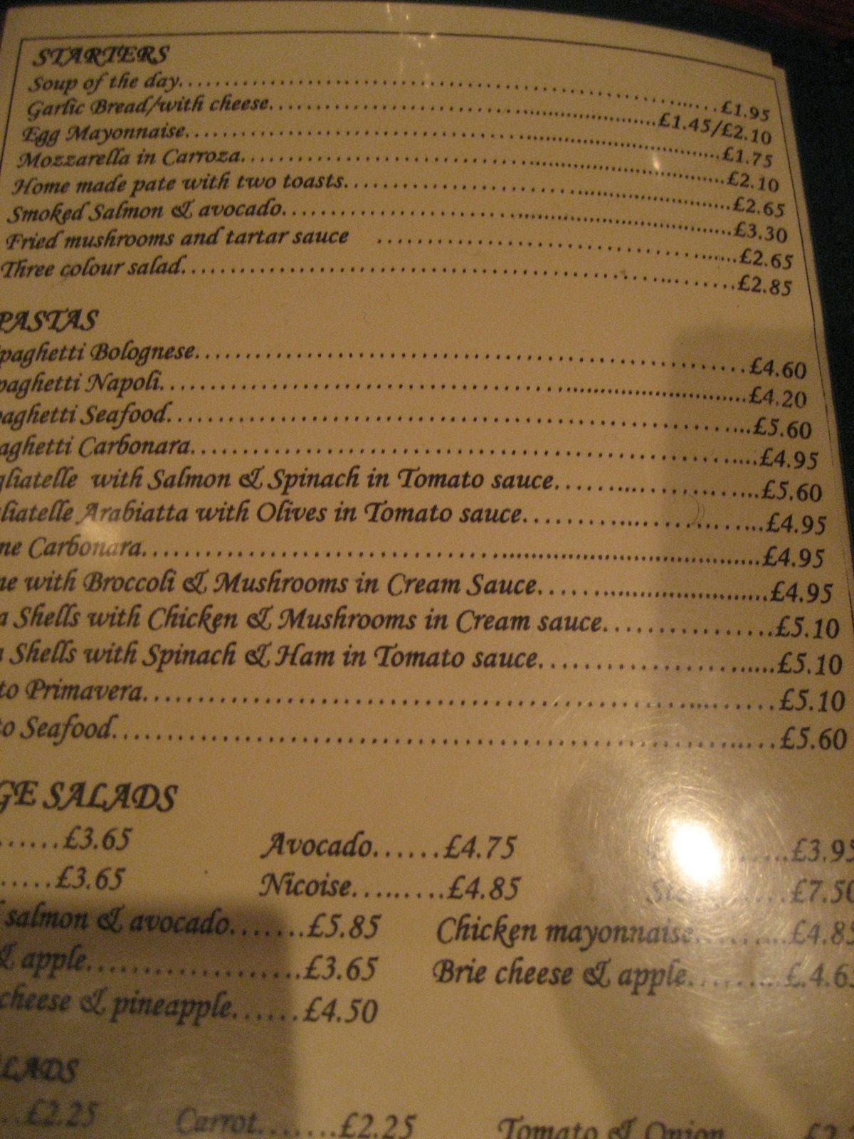 菜單第二頁。重點在那個價錢。這樣的價格在倫敦來說真的是便宜的啦!