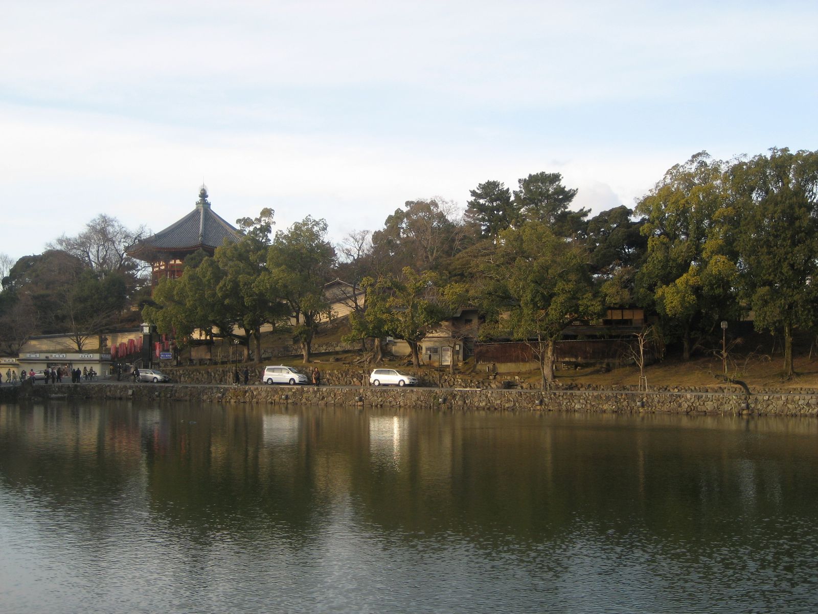 從興福寺南邊的猿沢池看興福寺的五重塔。
