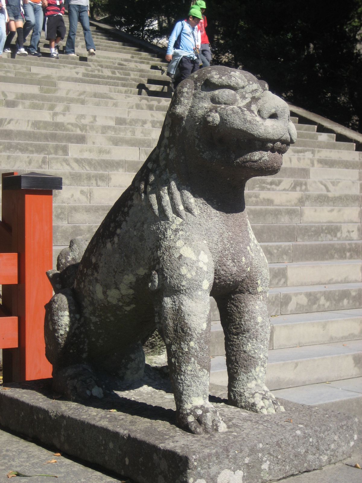 大石段前可愛的一隻石神獸。