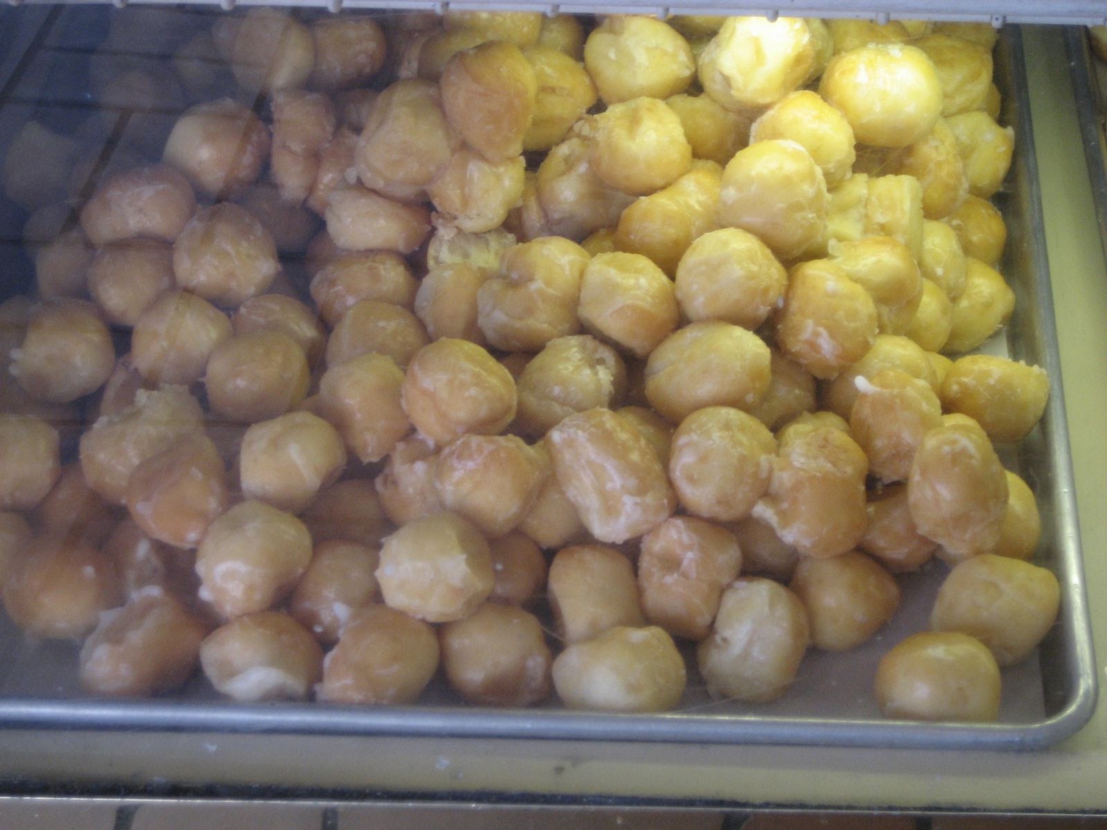 這是甜甜圈中間那一圈切下來以後拿去炸的,一般管它叫donut holes。來Happy Donuts買甜甜圈的時候有時候看老闆心情好不好。老闆心情好的時候會額外丟兩三個donut holes到你的紙袋裡當「殺必死」。