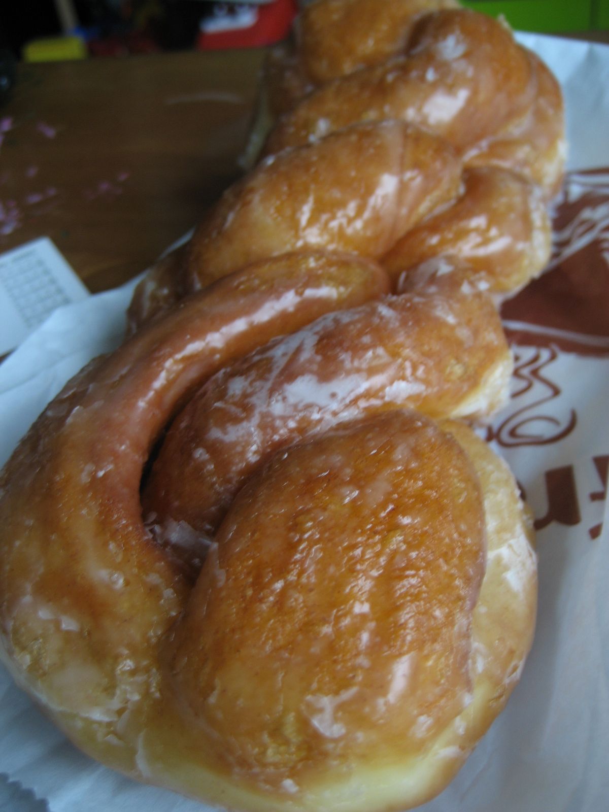來看看這次有吃到的幾款甜甜圈吧。這就是有人辯稱有益身體健康的那款Apple Fritter。這個又大又重,給得誠意十足。