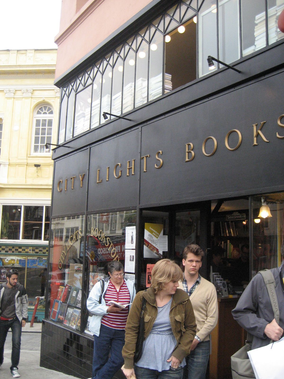 這家老書店City Lights Bookstore在舊金山的人文發展史上就扮演了相當重要的角色。它在1953年由詩人Lawrence Ferlinghetti和Peter D. Martin共同創立的。它除了是一家書店之外,也是一個非營利的基金會,專門出版和舊金山有關係的書籍。它最出名的出版品大概是在1956年為詩人Allen Ginsberg出版的詩集Howl and Other Poems。這本詩集中最出名的詩Howl對當時年輕人的使用麻醉藥和性有很多露骨的描述。Lawrence Ferlinghetti因為出版了這本詩集,被逮捕入獄。這個案子在當時轟動一時,成為文學愛好者捍衛文字自由的重大指標案件。一直到一年之後,這個案子才被主審法官駁回,裁定這一首詩並無不恰當之處。此一事件之後,Allen Ginsberg奠定了他美國近代重要詩人之一的地位,這家City Lights Bookstore也成為左派人士維護人權和自由的精神堡壘。