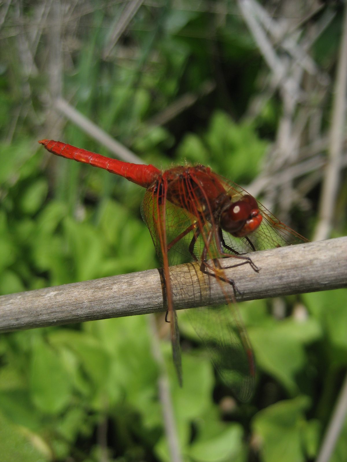 看了那麼多的植物,來看一個會飛的吧。隨手在園區裡照下來的一隻漂亮的紅蜻蜓。希望你聰明一點,別飛到肉食性植物那一區去啊。