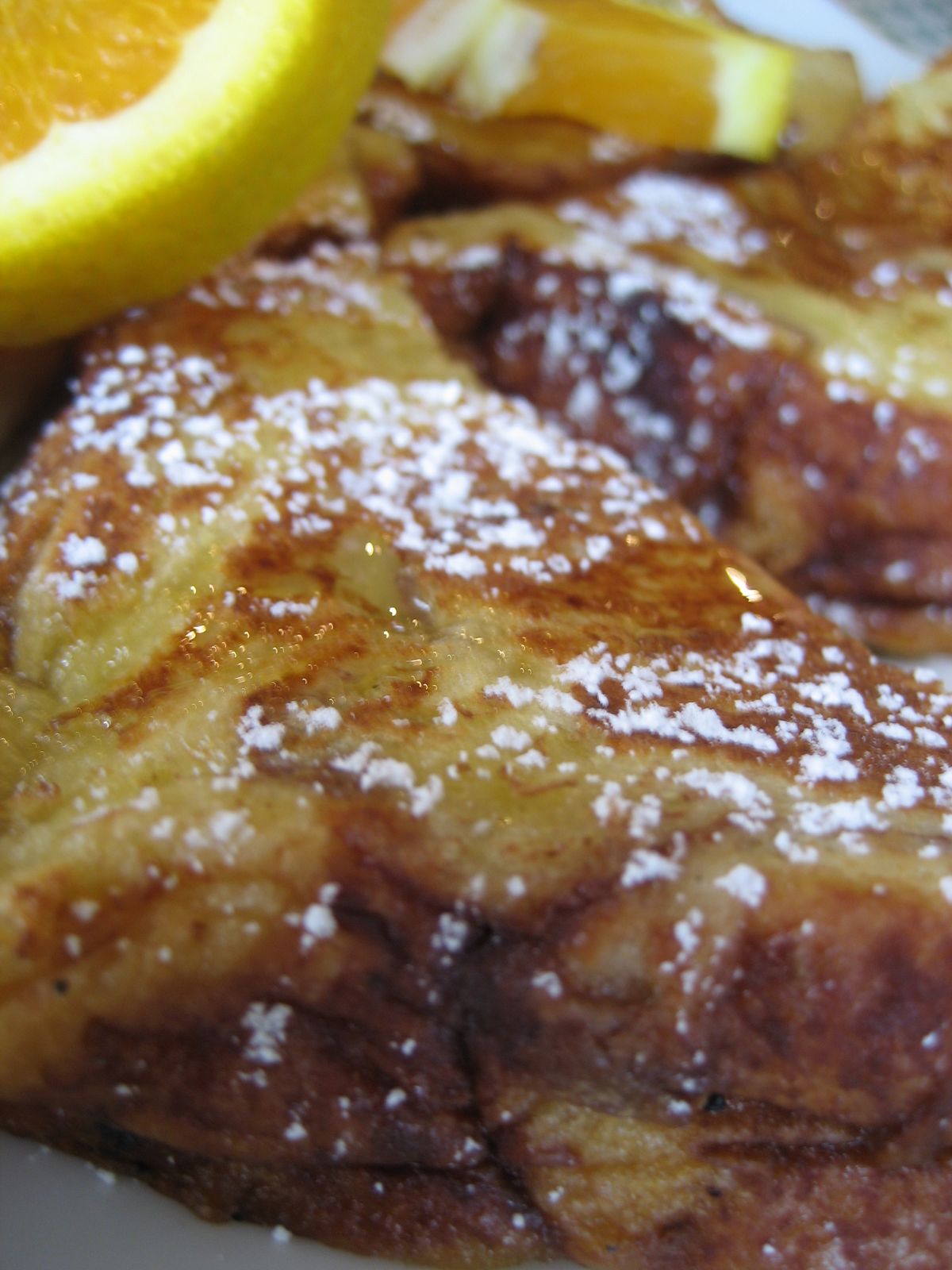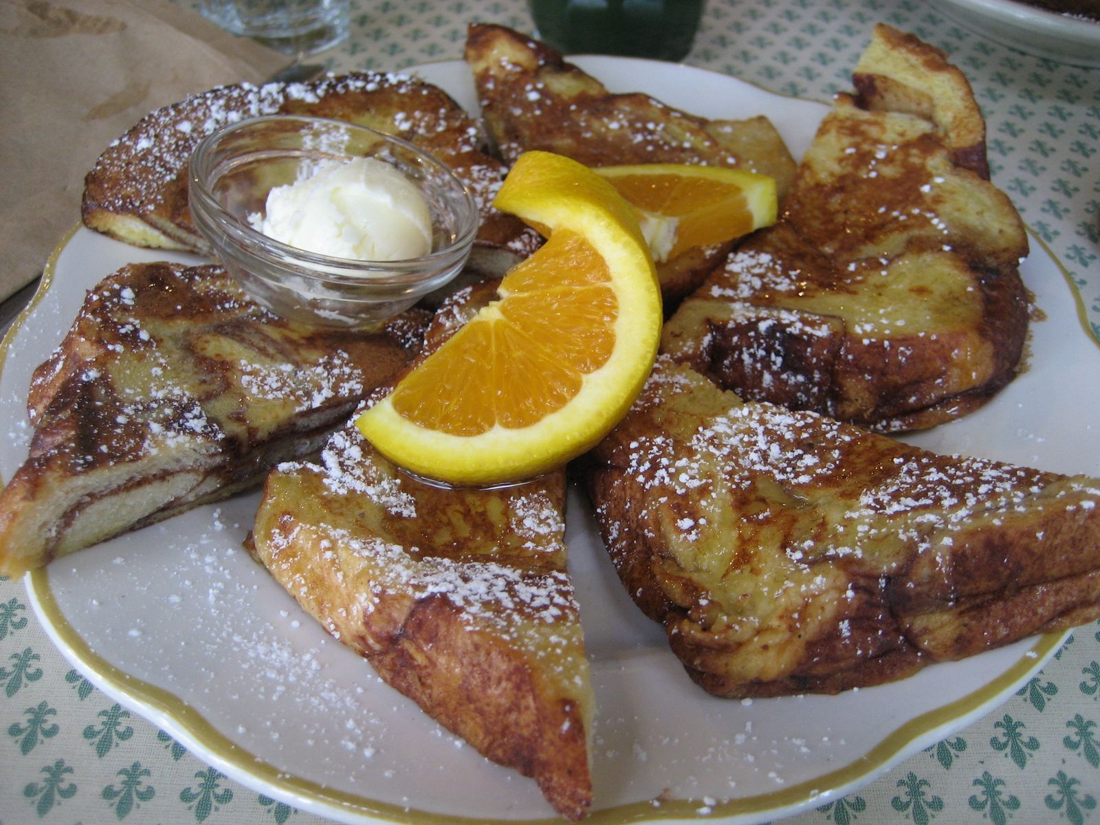 法國土司Brioche Pain Perdu。這是用cinnamon brioche裹橘子汁蛋液去煎的,很好吃。