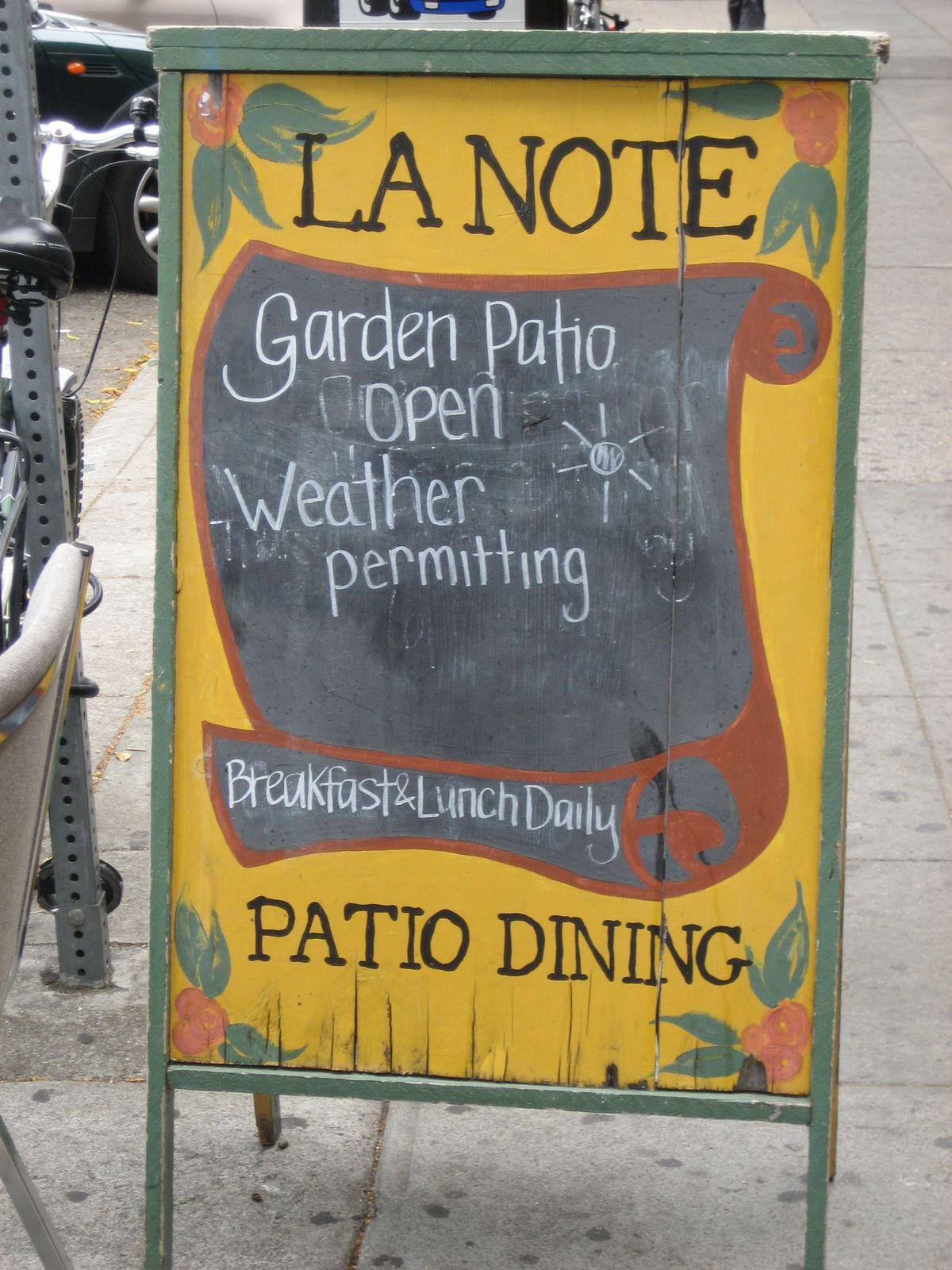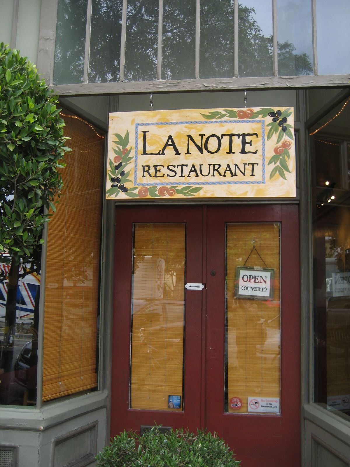 這一家小餐館La Note位於柏克萊的市區內。老闆Dororthée Mitrani-Bell是柏克萊大學的畢業生。畢業了以後,有點不務正業,跑來整修這幢1875年的老建築,然後開了這一家餐廳。老闆本身是法國人,所以餐館作得有點像在法國常見的小餐館。它們的菜色標榜的是南法普羅旺斯的風味。啊!還有什麼比普羅旺斯的陽光更適合我們愛吃早午餐的這種懶人。