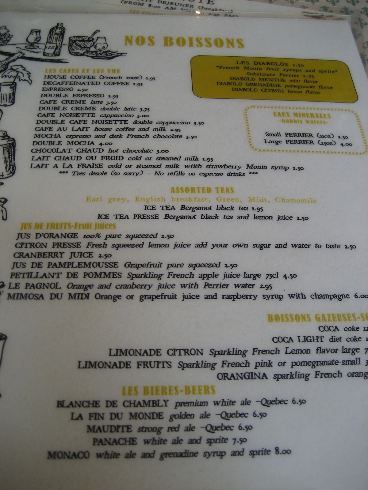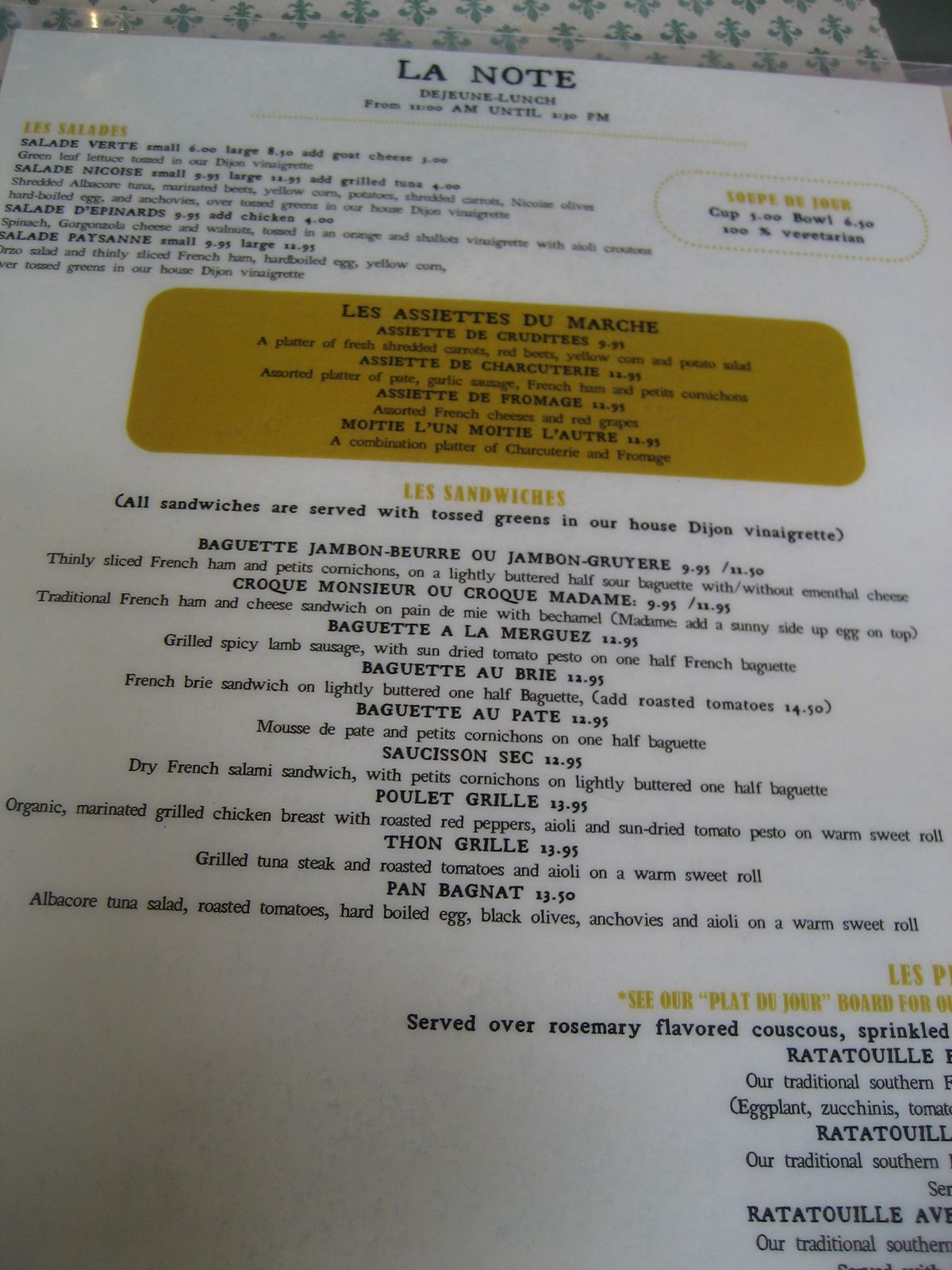 這家在這附近頗受歡迎,有時候排隊還排得蠻長的。它們一整個星期都賣早餐午餐,現在從星期四到星期六也加賣三天的晚餐。它們的菜式和那個懶懶的調調都和以前在Palo Alto裡California Ave.上常混的的另一家法式小餐館Cafe Brioche很像。這一次回加州,没有時間回南灣去重温舊夢,所以來吃一下這家La Note,彌補一下没去吃Cafe Brioche的遺憾。