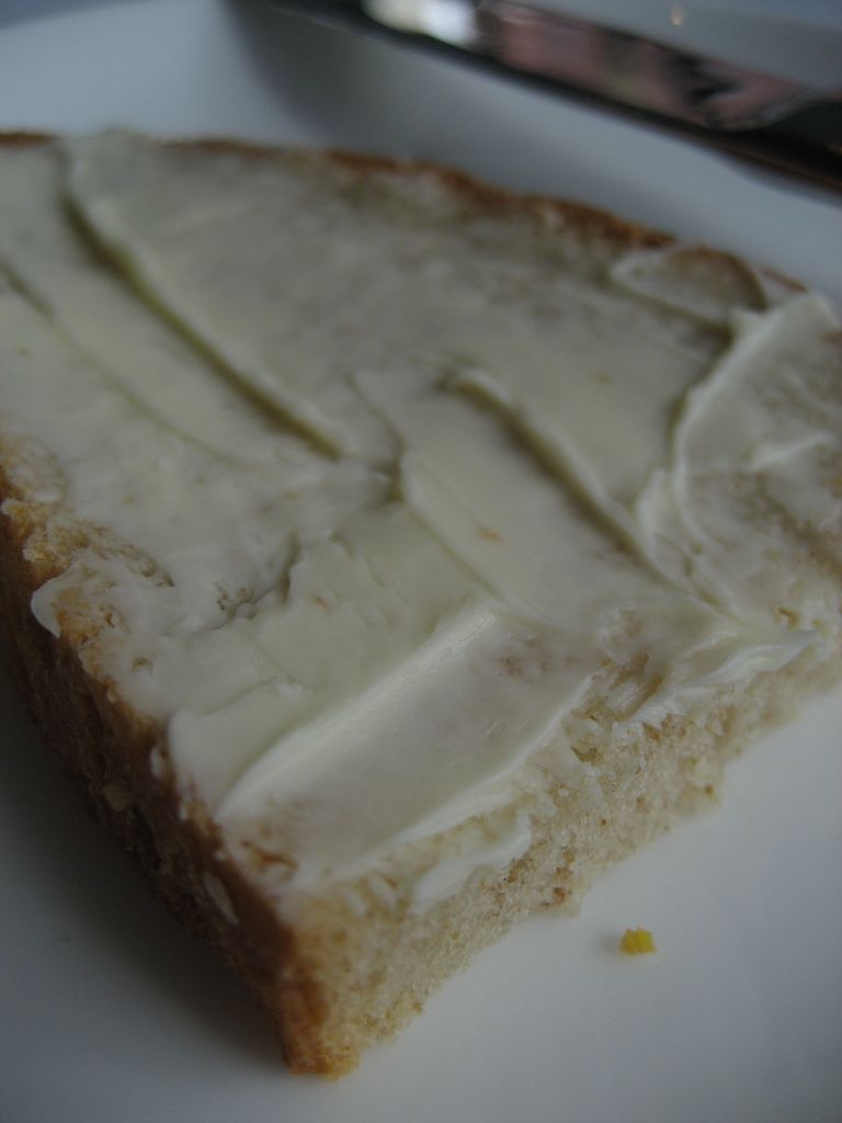 那個奶油上的名字是我們常見的印在一張紙上蓋上去的。那個麵包奶油真的是好吃,我們給人家作掉了兩盤!