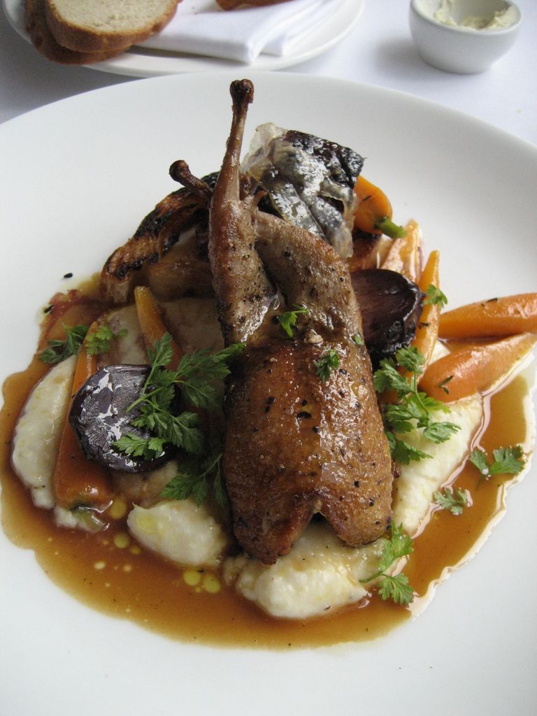 對啊,那盤菜剛送上來的時候我也是傻眼,那隻quail怎麼還擺了這麼性感的一個姿勢,害我刀子一下子不知道要從那裡給它切下去!不過再怎麼妖嬌美麗,最後還是要吃下肚的啦!