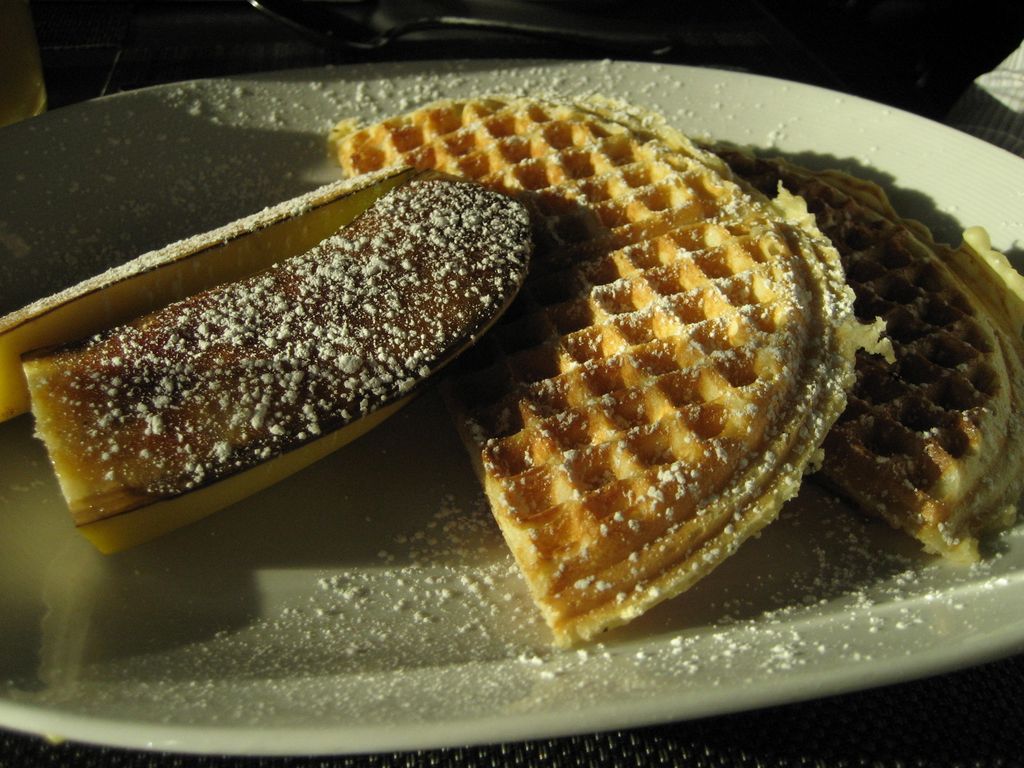 今天吃的。鬆餅一份。那個香蕉烤過的,還蠻香的。