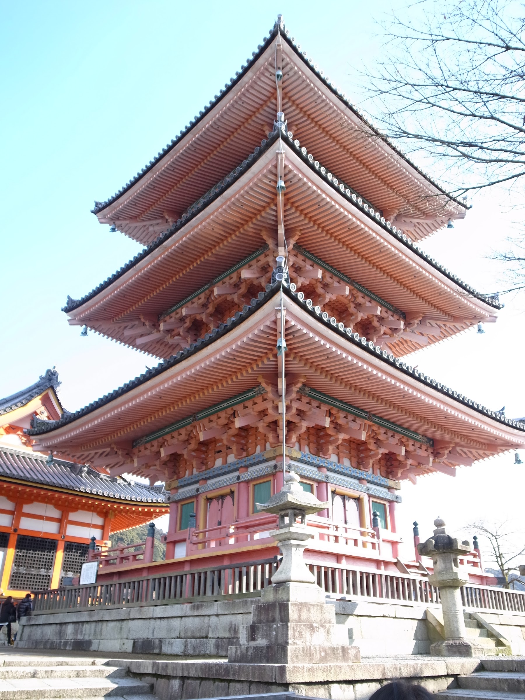 清水寺作為南都六宗裡法相宗的重要寺廟之一,原址在西元778年就已經存在了。不過畢竟是木造建築,和奈良的東大寺命運差不多,也是燒了又蓋,蓋了又燒。今天看到的大部份是1633期間德川家光時期留下來的版本。