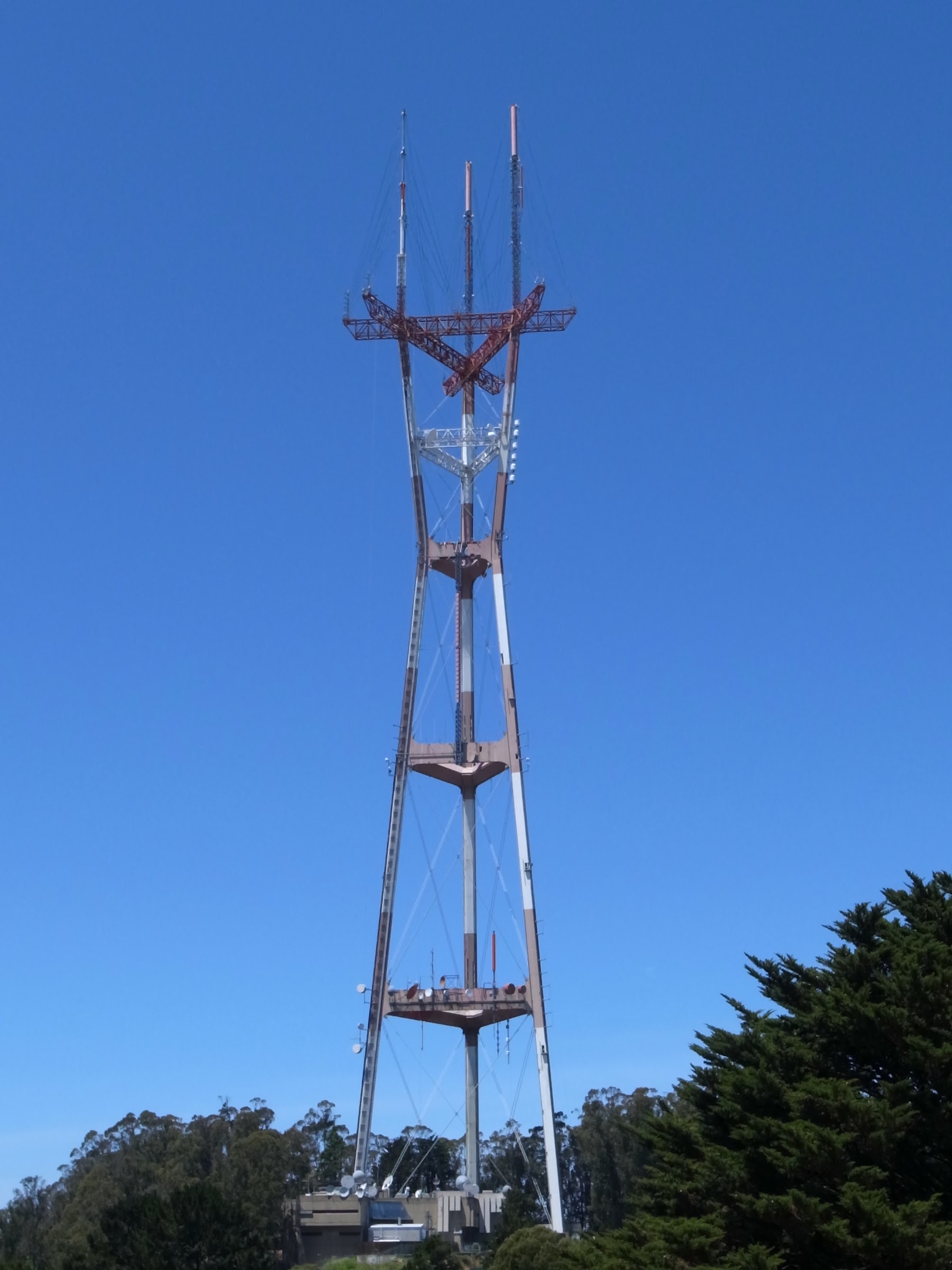 隔山的Sutro Tower從別的地方看大部分只能看到上半身。這裡也是可以從頭看到脚的絶佳地點。那兩座鐡塔的所在地就是大部份人造訪的觀景台Christmas Tree Point。