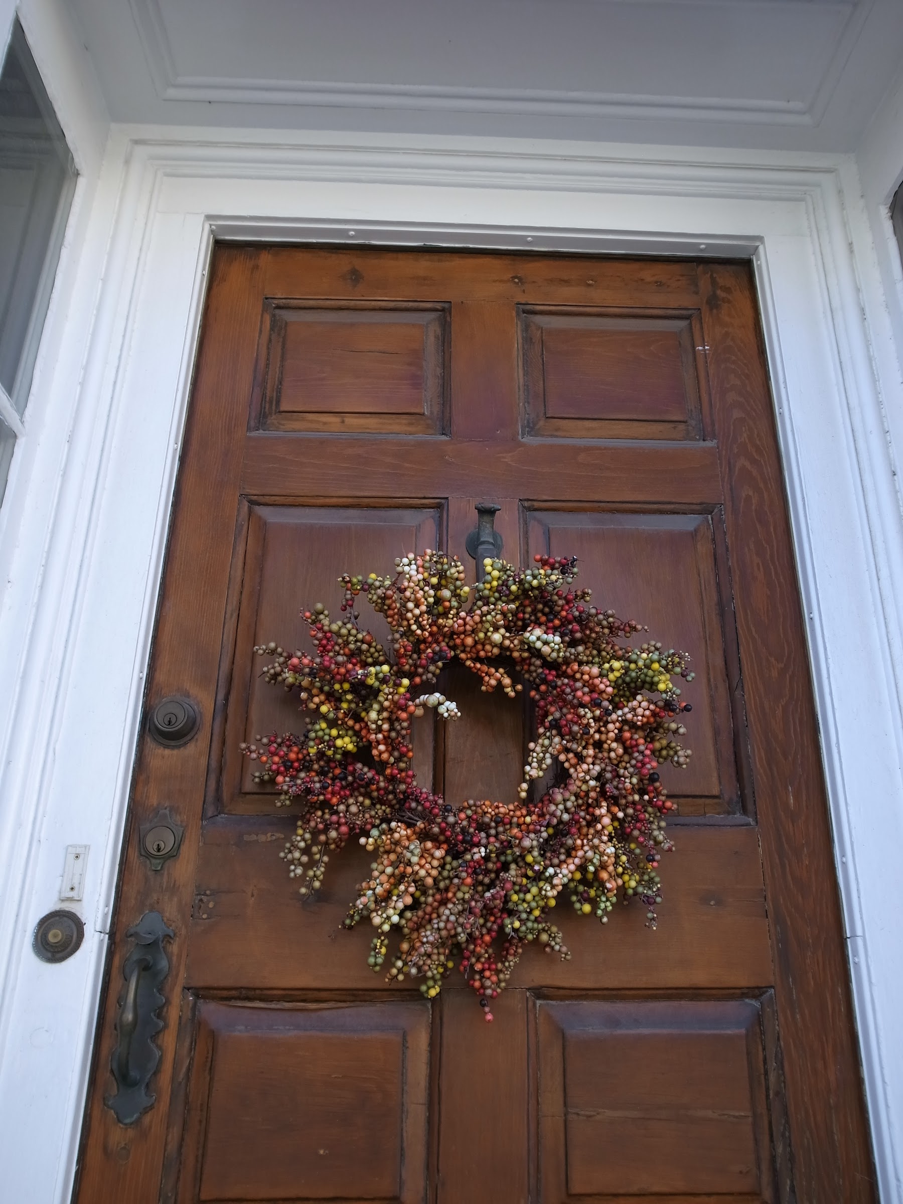 這種新英格式的房子大門都直接靠在大街上,前面完全没有院子可以作緩衝的,所以門面爭奇鬥艷,都裝飾得滿漂亮的。來看看這些各式各樣的門也是挺有意思的。