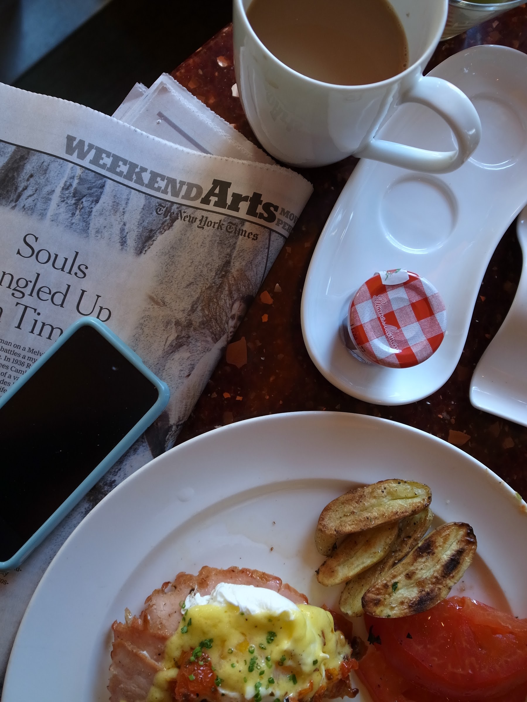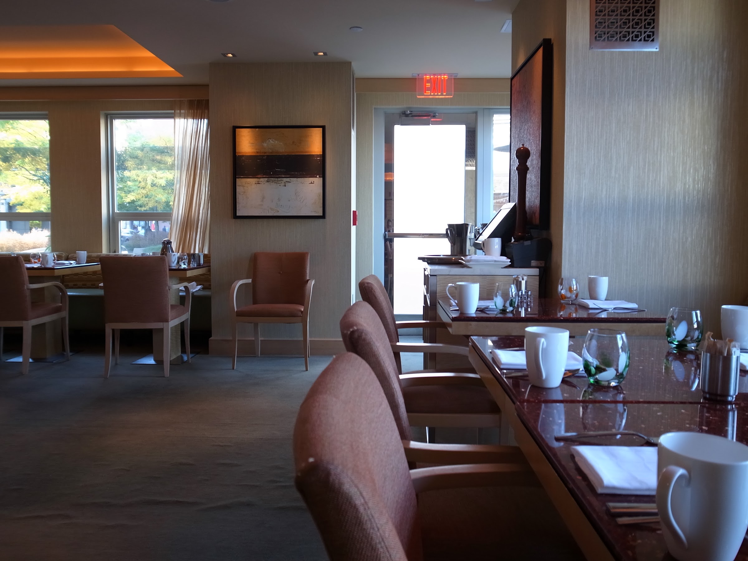 到波士頓來玩耍,有幾晚住在Battery Wharf岸邊的旅館Fairmont。出門渡假一向很討厭趕行程。又不是在上班,急什麼!早上睡到自然醒才算是渡假嘛!這是有天早上睡得晚,不想再出門找早餐吃,於是摸到他們樓下的餐廳來吃。