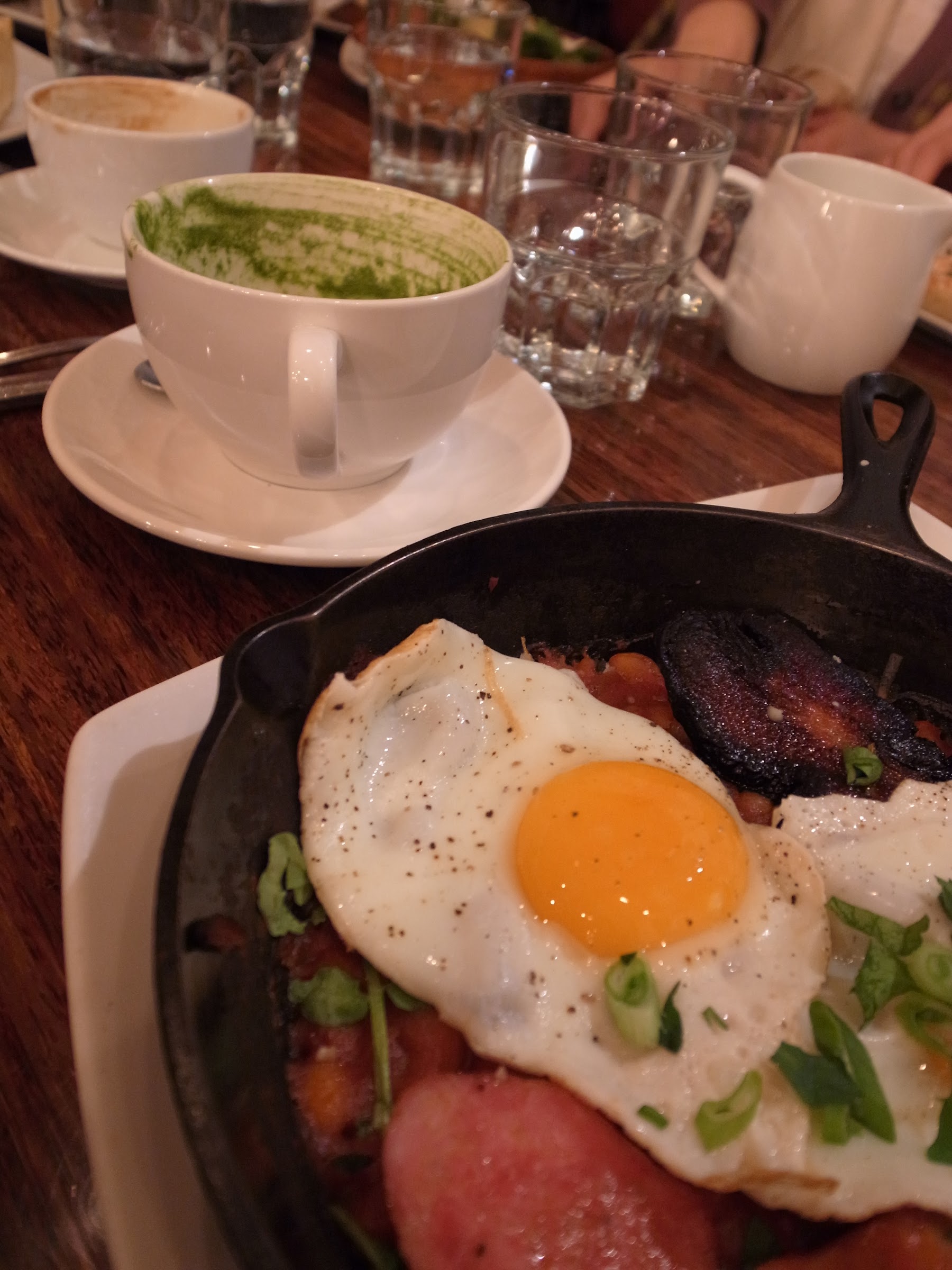 說這家最近很紅真的不是說假的。我來溫哥華之前準備要試的餐廳名單,這家最後是名單上最想試的早午餐。人到了溫哥華之後和朋友約見面,想說還是讓在地人挑餐廳,結果她提議的也正是這一家。我們來的時候三個人正在排隊,結果上次和她一起來吃的朋友也不約而同地另外帶了一個朋友來吃。最後老朋友新朋友五個人併了一桌。大家都是愛吃鬼,天南地北聊那座城裡有什麼好吃的聊得挺投機的,真的是相見恨晚。